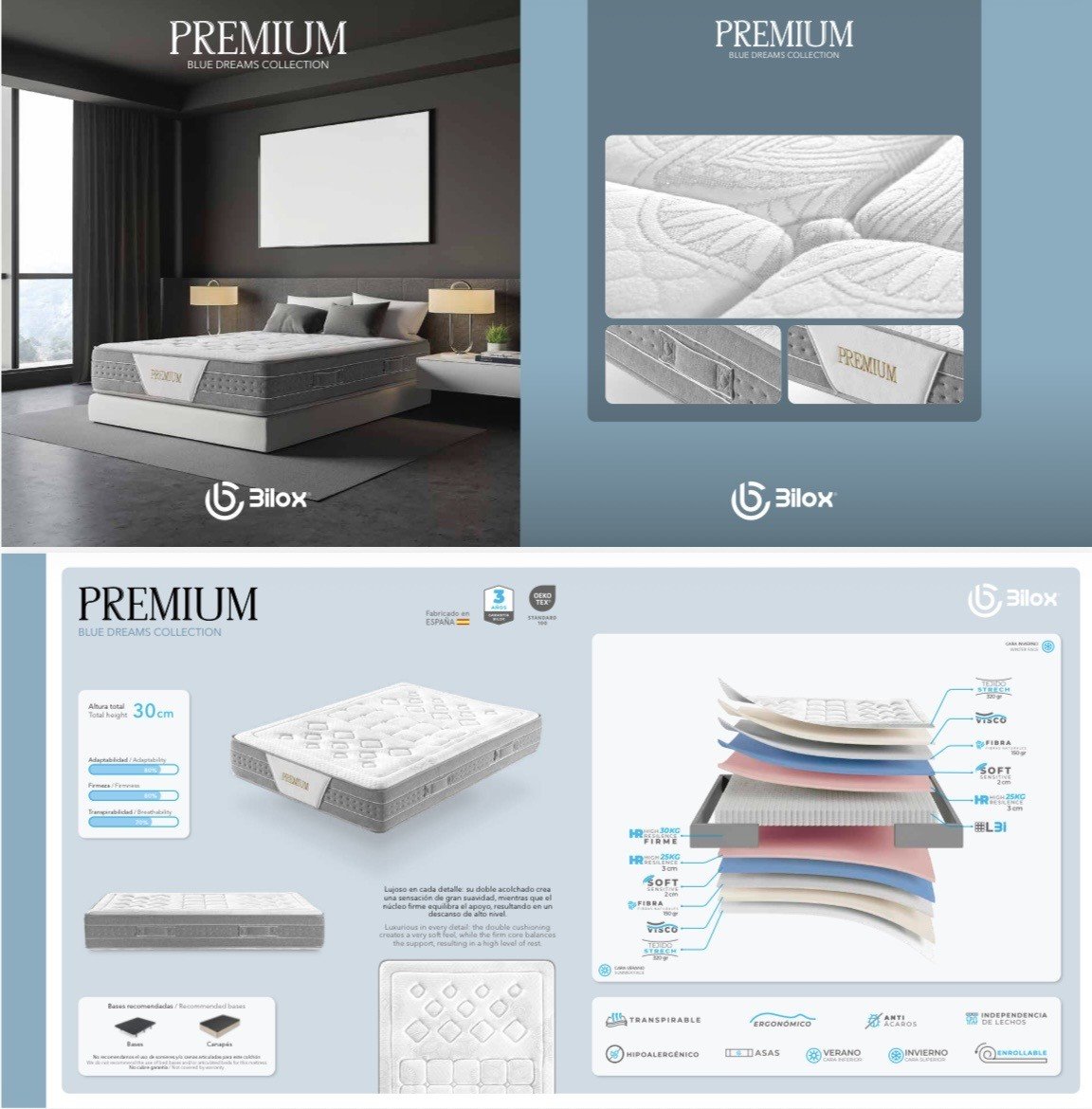 Colchón muelle ensacado mas visco, doble cara con sensitive soft
