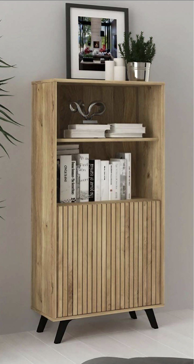 Mueble bar con estanteria superior y puerta, con pata alta y disponible en varios acabados