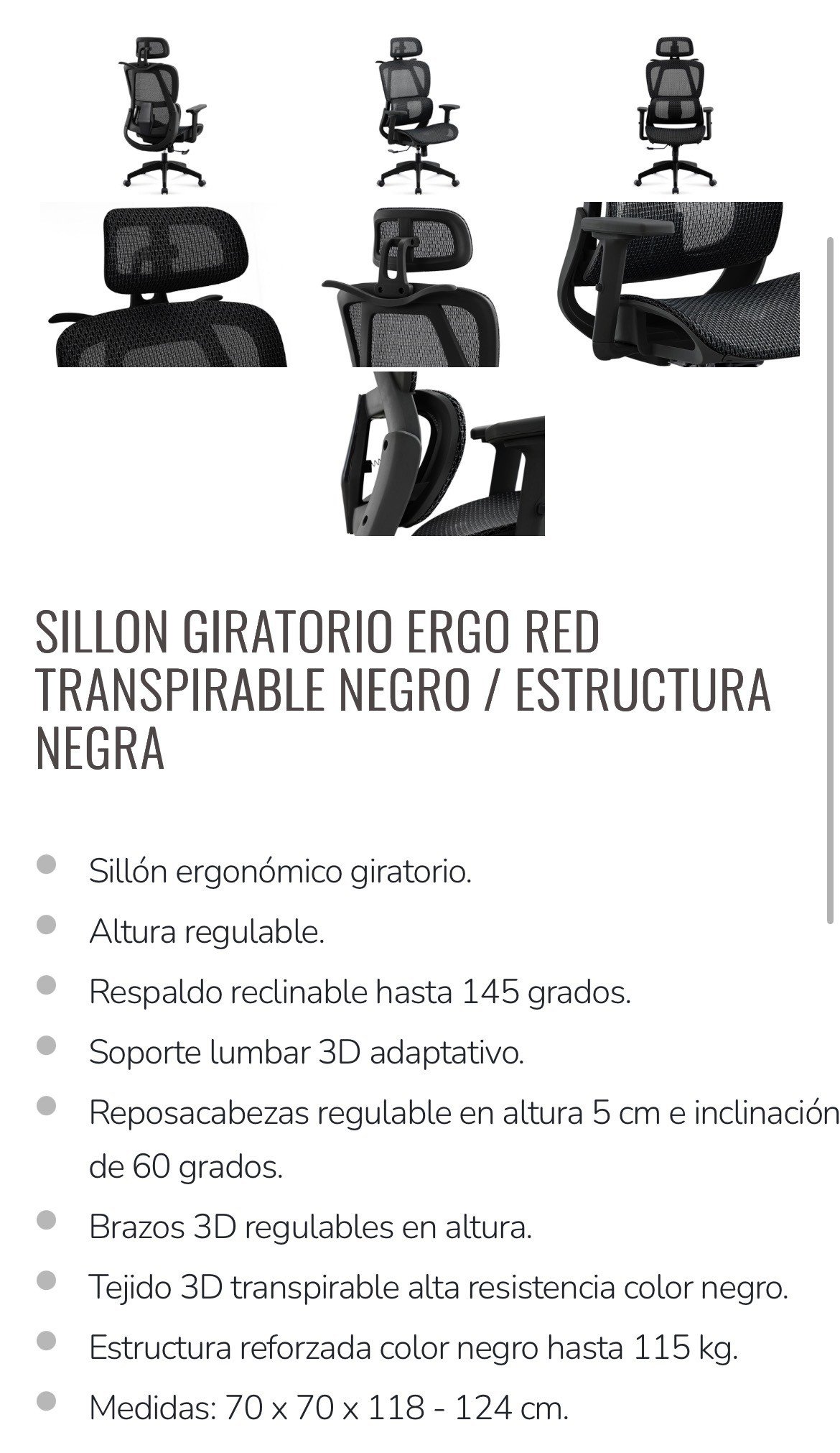 Ergonomico,regulable,reposacabezas, brazos y soporte lumbar transpirable negro