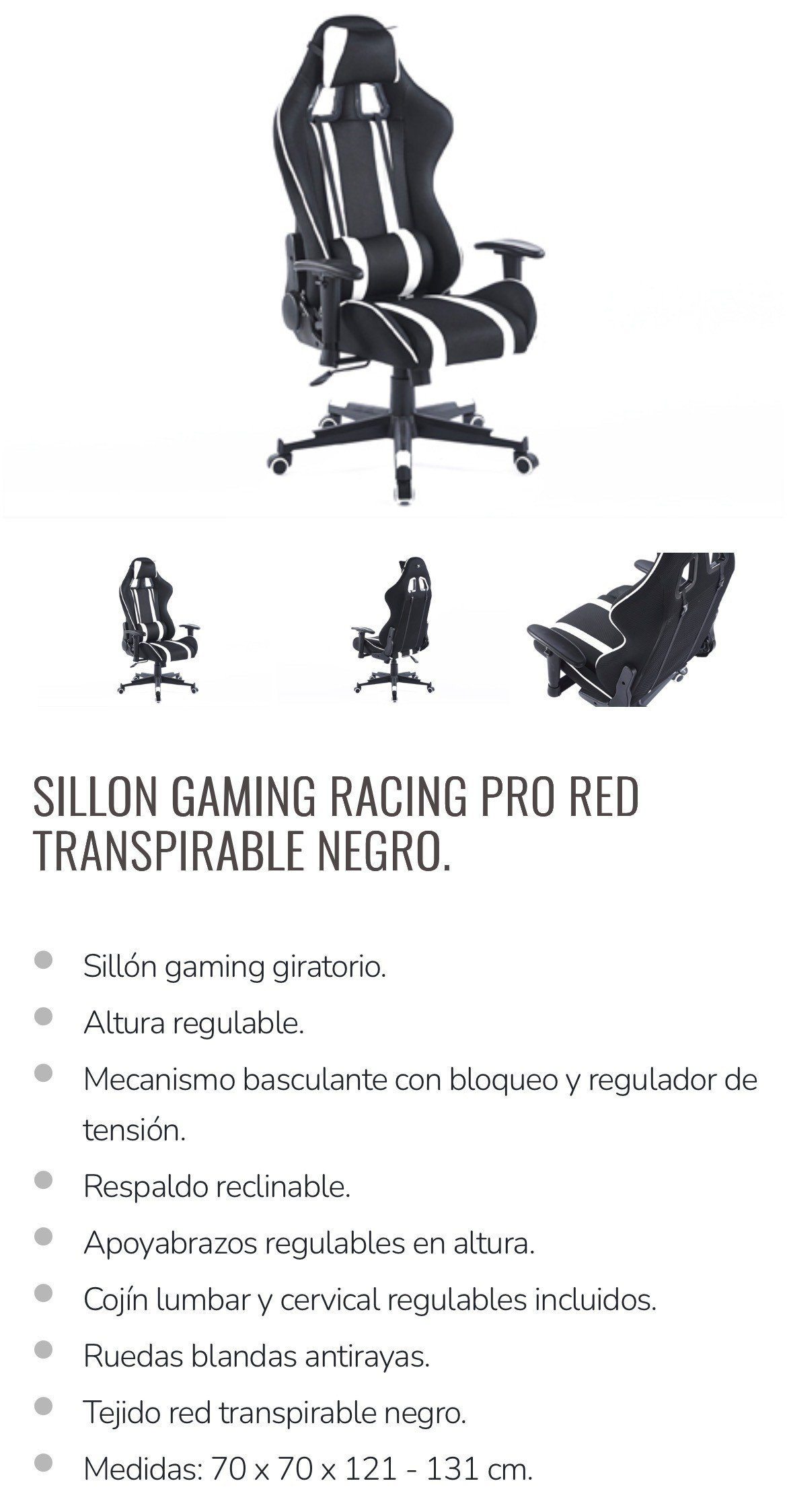 Mecanismo basculante, respaldo reclinable, cojín lumbar y cervical en red transpirable negro